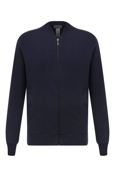 Темно-синяя толстовка с воротником-стойкой и двумя врезными карманами сшита из мягкого хлопкового футера. Материал хорошо пропускает воздух и сохраняет тепло тела, а продуманный крой и рукава реглан обеспечивают свободу движений. Однотонная модель застегивается молнией.