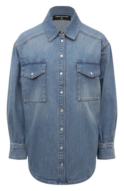 Голубую джинсовую рубашку силуэта оверсайз сшили из мягкого хлопка с легким эффектом делаве. Модель с длинными рукавами, отложным воротником и двумя накладными карманами с клапанами застегивается кнопками-кабошонами. Наши стилисты предлагают составить повседневный образ с черными брюками, сумкой и казаками, а также с бежевой дубленкой.