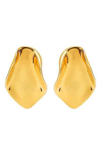 Фигурные серьги с застежкой-пусетой выполнены в форме лепестка лотоса, символизирующего женственность, нежность и силу. Для изготовления аксессуара мастера бренда использовали стерлинговое серебро, покрытое позолотой.