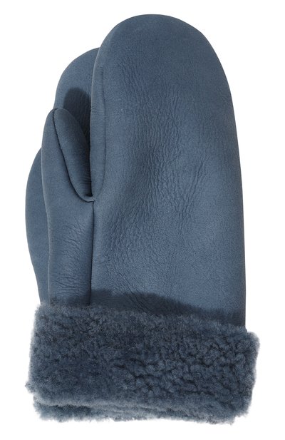 Мастера марки выполнили синие варежки из матовой мягкой овчины. Ее крупнозернистая внешняя сторона отвечает за прочность аксессуара. Густой короткостриженый мех внутри, которым также выделили и манжету снаружи, обеспечивает тепло.