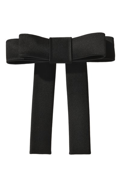 Крупный черный бант мастера марки выполнили вручн ую из шелковистой атласной ленты, сложенной вдвое, чтобы аксессуар лучше держал форму. Модель со свободно ниспадающими концами фиксирует прическу заколкой-автоматом с силиконовой противоскользящей отделкой.