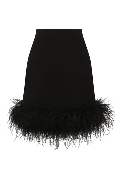 Алина Нехай превратила мини-юбку из гладкой матовой вискозы в идеальную основу образа для вечеринки. Черный цвет поможет модели поладить с верхом любого оттенка, а предельно короткая длина не помешает в танце. На каждое движение будут отзываться тонкие перья страуса, охватившие изделие снизу.