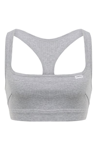 Серое меланжевое бра с широким эластичным поясом и X-образной спинкой напоминает спортивные модели. К удобной посадке добавили приятный на ощупь материал — хлопковый трикотаж, который хорошо пропускает воздух и отводит влагу.