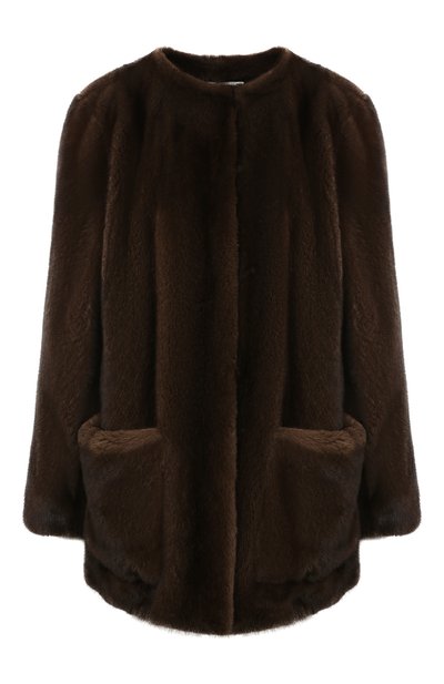 Темно-коричневая шуба, для пошива которой Джулия Гурман выбрала пластичный шелковистый мех норки, садится точно по фигуре и не утяжеляет силуэт. Очищенная от декора однотонная модель с круглым вырезом, мягкой линией плеч и длинными рукавами дополнена крупными накладными карманами.
