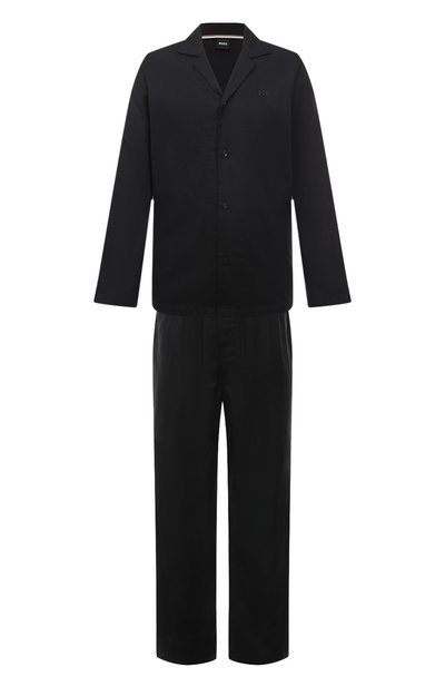 В черной пижаме будет комфортно во время сна и отдыха. Для пошива рубашки прямого кроя и брюк с широким эластичным поясом мастера марки использовали тонкий мягкий хлопок, который хорошо пропускает воздух и отводит влагу. Переплетение волокон создает жаккардовый мотив пье-де-пуль.