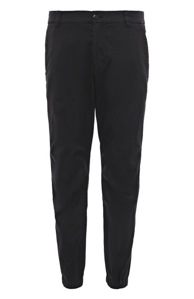 Команда марки стилизовала черные чиносы под джоггеры, дополнив их манжетами с потайной резинкой. Для пошива модели с защипами и швами в области колен, гарантирующих комфорт движений, использовали мягкую стрейчевую ткань. Дышащий материал, усиленный нитями полиэстера, не мнется и не вытягивается со временем. Пояс с эластичными вставками обеспечивает удобную посадку на талии.