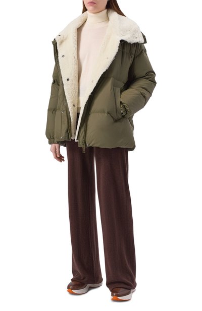 Куртку с утеплителем из гусиного пуха и материала Graphene® с терморегулирующими свойствами выполнили из ткани Re-Nylon на основе переработанного пластика. Модель с термосварными герметичными швами дополнили капюшоном и тремя карманами на водонепроницаемых молниях. Рукава можно отстегнуть, превратив изделие в жилет.