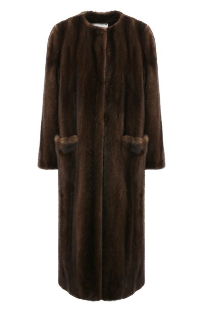 Для пошива прямой темно-коричневой шубы с круглым вырезом Джулия Гурман выбрала шелковистый норковый мех с искрящимся блеском. Тонко выделанные шкурки тщательно отобрали по длине и оттенку ворса и искусно соединили так, чтобы создать эффект бесшовного полотна с градиентным узором, который визуально вытягивает силуэт.