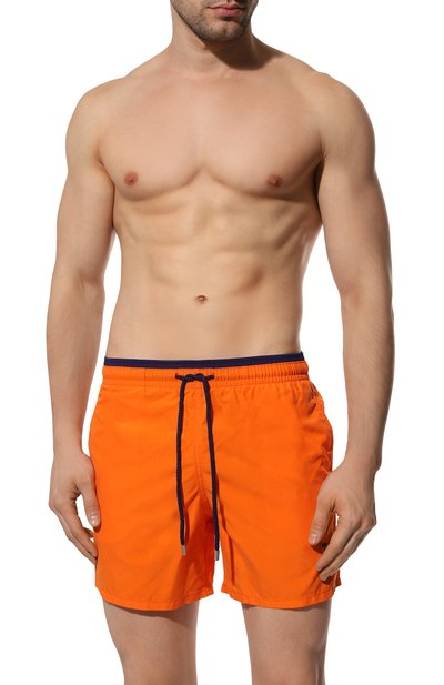 Свободные плавки-шорты насыщенного кораллового цвета мастера марки сшили из легкого, но прочного нейлона, который почти не ощущается на теле и быстро сохнет. При погружении в воду на изделии становится виден рисунок в виде акул. Модель с широким эластичным поясом-кулиской удобно садится по фигуре.