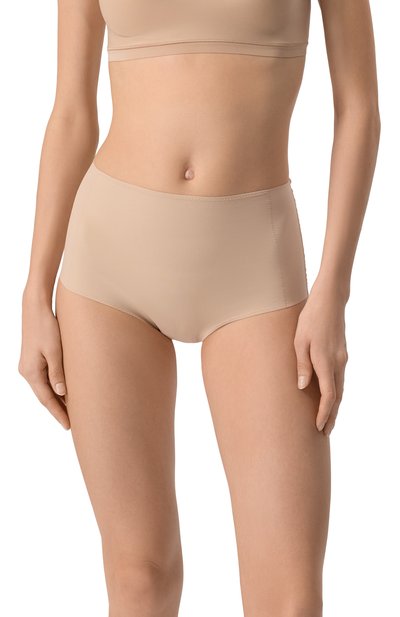 Для изготовления бежевых трусов с завышенной посадкой, создающей легкий утягивающий эффект, использовали мягкую тонкую микрофибру. Приятный на ощупь материал идеально тянется, но не деформируется даже после многократных стирок. Кр ая обработали методом лазерной резки, поэтому они сохранят безупречный внешний вид надолго.