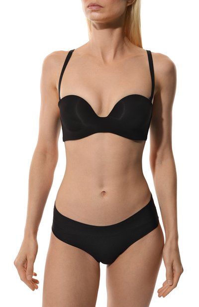 Для пошива черного бюстгальтера выбрали мягкую гладкую микрофибру на основе тонкого шелковистого нейлона с добавлением эластановых волокон. Модель с плотными чашечками и плоскими швами комфортно садится по фигуре, создавая эффект второй кожи, и остается незаметной под облегающей одеждой.