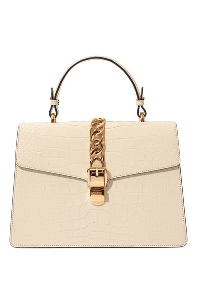 Сумка Sylvie 1969 с яркой цепочкой на геометричном клапане будет оставаться актуальной, несмотря на смену сезонов и трендов. Отточенный силуэт, созданный в 1969 году, выводит модель за рамки модных течений, а прочная кожа аллигатора не боится царапин и потертостей. Фактурный материал окрашен в чистый белый цвет, поэтому проявляет свой неповторимый естественный рисунок только вблизи. В комплекте – съемный плечевой ремень.