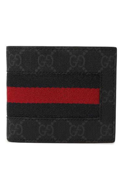 В небольшом темно-синем портмоне объединили два кода бренда. Аксессуар из прочного фактурного канваса с паттерном GG Supreme украсили нашивкой в цветах ленты Web. Внутри — восемь слотов для пластиковых карт и два отделения для банкнот и чеков.