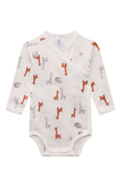 Мастера марки выполнили белое боди из мягкого тонкого трикотажа. Материал, произведенный из длинных волокон органического хлопка, не вызывает аллергию, а обработанные вручную плоские швы не натирают и не впиваются в кожу. Чтобы изделие было удобнее надевать и снимать, запах и шаговый шов дополнили кнопками.