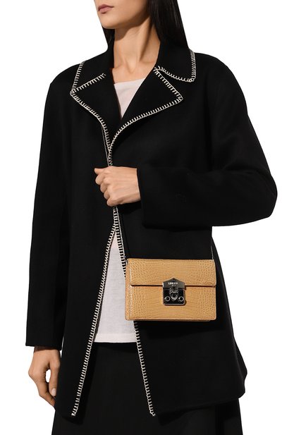 Для пошива оранжевой сумки Sylvie со съемным плечевым ремнем Алессандро Микеле выбрал прочную фактурную кожу страуса с уникальным естественным рисунком. Клапан украсили золотистой цепью с крупными звеньями, а замок-защелку декорировали тисненым логотипом марки, основанной Гуччио Гуччи. Внутрь поместятся смартфон, картхолдер и помада.