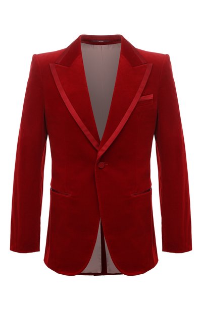 При создании коллекции Aria, в которую вошел этот алый пиджак, Алессандро Микеле обратился к архивам бренда. Для пошива модели дизайнер выбрал мягкий хлопковый бархат, блеск которого усиливает атласная отделка по краям широких заостренных лацканов. Наши стилисты предлагают носить изделие с вещами нейтральной гаммы, например, с черными брюками и рубашкой.