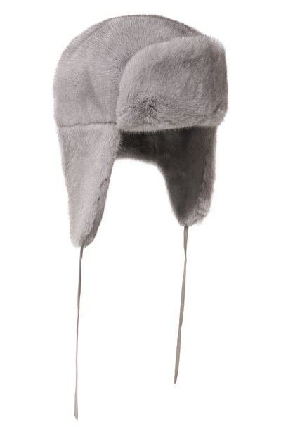 Светло-серую шапку-ушанку с широким козырьком сшили из неокрашенного меха норки. Тонко выделанная пушнина с густым шелковистым ворсом хорошо удерживает тепло, поэтому аксессуар согреет даже в суровые морозы. Наушники можно завязать сзади или под подбородком длинными плетеными шнурами.