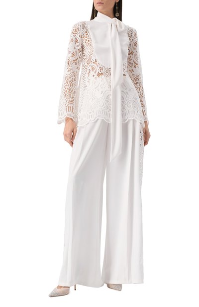 Брюки кремового оттенка могут стать основой комплекта любой степени сложности. Например, наши стилисты предлагают сочетать их с пиджаком в тон и черными топом, лоферами и сумкой. Для изготовления модели со складками на поясе мастера марки, основанной Гуччио Гуччи, использовали особенно мягкую фактурную наппу.