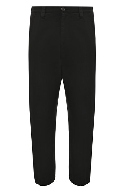 Черные брюки с классической посадкой станут достойной альтернативой джинсам в повседневном образе. Для пошива модели использовали тонкий, но не менее прочный, чем деним, хлопковый твил, которой хорошо пропускает воздух, не мнется и не вытягивается со временем. Задний карман украсили красным брендированным патчем.