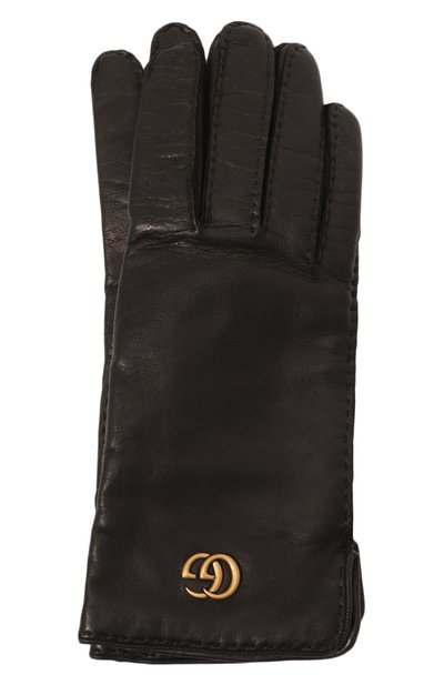 Угольно-черные перчатки с разрезом на раструбе мастера бренда изготовили из мягкой кожи наппа с благородным матовым блеском. Однотонный аксессуар с кашемировым подкладом, комфортно облегающий руку, украшен небольшой металлической монограммой, сложенной из инициалов Гуччио Гуччи.