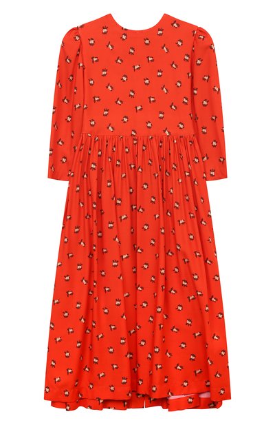 Котята в белых рубашках переселились со страниц детских книг на красное миди-платье из нежной вискозы. Миниатюрные персонажи прячутся среди бессчетных складок, спускающихся от подчеркнутой талии с эластичной вставкой сзади. Со струящимся подолом перекликается деликатная драпировка сверху на рукавах, которая смягчает линию плеч.