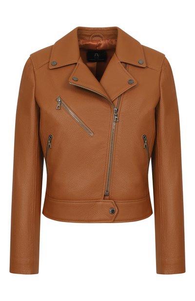 Косуху выполнили из зернистой оленьей кожи, а для изготовления подкладки использовали вискозу. Сама куртка, три кармана и рукава сзади застегиваются молниями, а пояс модели фикси руется кнопкой.