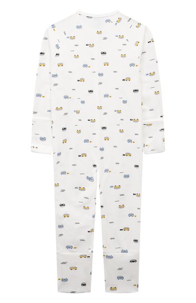 Кремовый комбинезон с рукавами реглан и круглой горловиной застегивается молнией с защитным клапаном. Модель сшили из гладкого хлопкового трикотажа с цветочными принтами. Мягкий эластичный материал не вызывает аллергию, пропускает воздух и комфортно облегает тело, не мешая ребенку свободно двигаться.