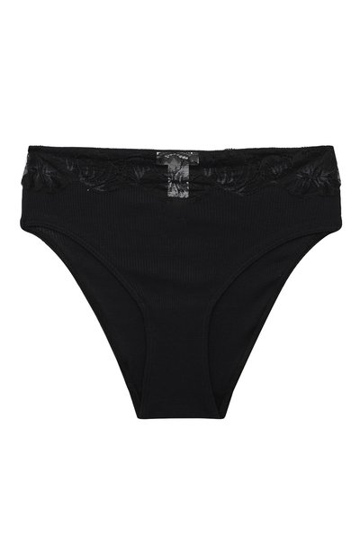 Для пошива черных слипов мастера марки использовали мягкий эластичный трикотаж из тонкого хлопка. Материал хорошо пропускает воздух, быстро отво дит влагу и слегка тянется, поэтому трусы комфортно облегают бедра. Спереди модель украсили фигурной вставкой из ажурного цветочного кружева в тон.