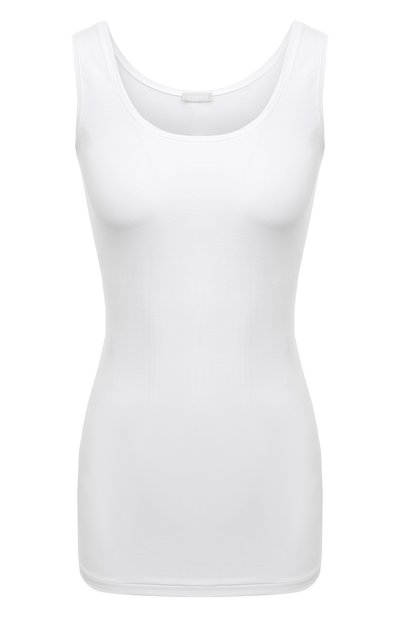 Белую майку с глубоким круглым вырезом мастера марки сшили из тонкого эластичного джерси на основе шелковистого микромодала, произведенного экологичным способом. Этот материал лучше хлопка пропускает воздух, быстро отводит влагу и легко тянется, поэтому изделие комфортно облегает фигуру, не ограничивая свободу движений.