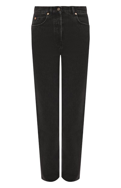 Мотив в виде тигра, ставший знаковым для бренда, на этих темно-серых джинсах получил новое звучание — Алессандро Микеле лишь намекнул на него в яркой вышивке. Надпись с логотипом марки, основанной Гуччио Гуччи, выполнили шелковистой алой нитью на прочном плотном хлопке.