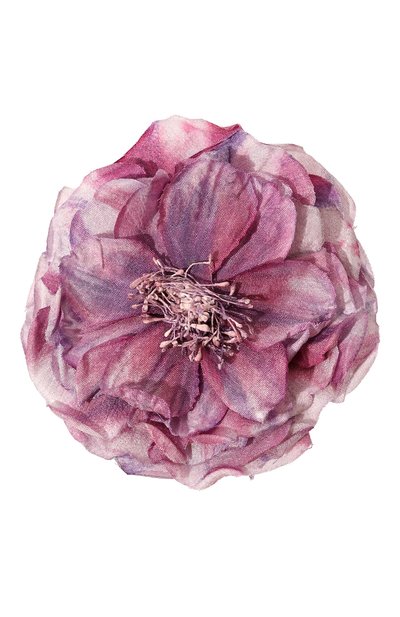 Крупная сиреневая брошь сделает женственнее даже самый лаконичный образ. Для изготовления модели мастера марки использовали шелковистый текстиль: каждый лепесток вырезали и окрасили вручную, создав плавные переходы оттенков. Аксессуар закрепили на основании, стилизованном под старинную серебряную монету с рельефным гербом.
