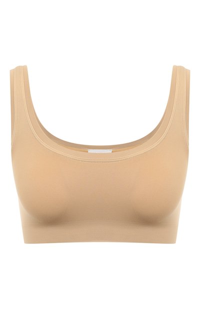Для пошива песочно-бежевого топа с узкими регулируемыми бретелями мастера марки использовали нежный тонкий трикотаж с добавлением стрейчевых волокон. Изделие из такого легкого материала облегает фигуру, словно вторая кожа, и при этом гарантирует полную свободу движений. Модель дополнили плотными формованными чашечками, обеспечивающими оптимальную поддержку груди, поэтому она сможет заменить бюстгальтер.