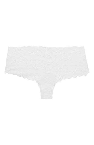 Белоснежные трусы-шорты мастера марки сшили из эластичного мягкого кружева с ажурным цветочным мотивом. Материал на основе нежной, но при этом прочной микрофибры легко тянется, но не растягивается, поэтому белье особенно комфортно облегает бедра и не теряет форму после многократных стирок.