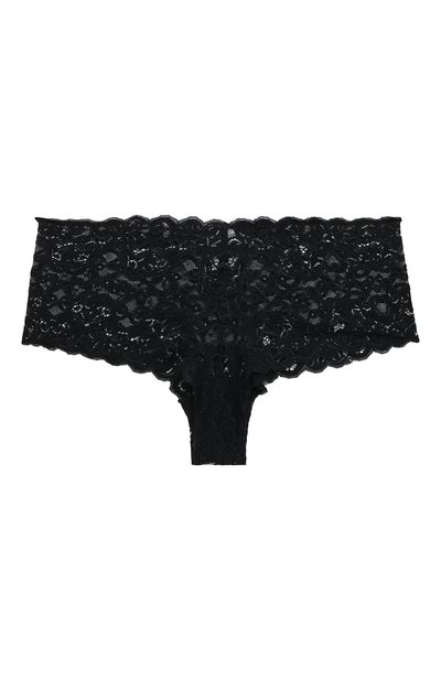 Мастера марки сшили черные трусы-шорты из ажурного эластичного кружева с цветочным мотивом. Легкий, но при этом прочный материал на основе нежной микрофибры не мешает воздуху циркулировать и не раздражает даже очень чувствительную кожу, а бесшовные фестончатые края не сдавливают и не натирают.