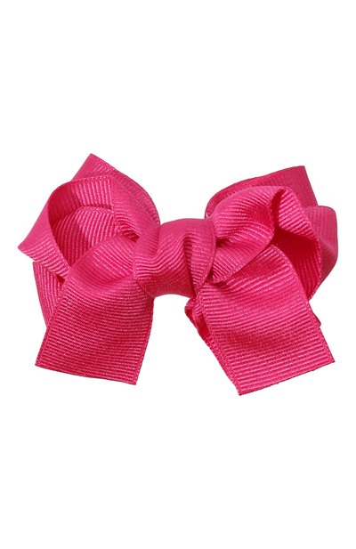 Небольшая заколка с зубчатым зажимом хорошо фиксирует пряди, при этом не нарушает структуру волос и легко снимается. Для изготовления основания мастера марки использовали прочный сплав. Аксессуар декорировали объемным бантом цвета фуксии, завязанным из широкой ленты грогрен.
