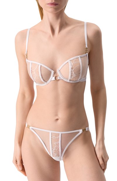 Трусы из линии Source Beaute выполнили из полупрозрачного тюля с цветочной вышивкой. Слипы со средней посадкой и эластичным поясом дополнили хлопковой ластовицей.