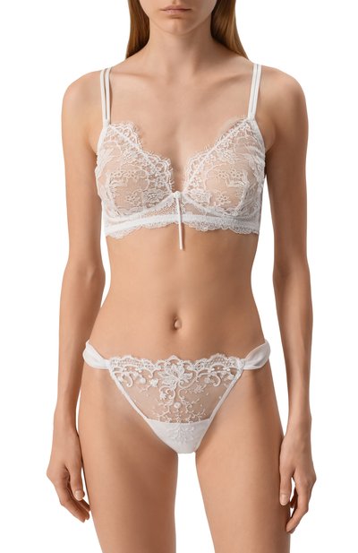 Трусы из линии Source Beaute выполнены из тюля с цветочной вышивкой. Стринги со средней посадкой и фестончатыми краями дополнены хлопковой ластовицей.