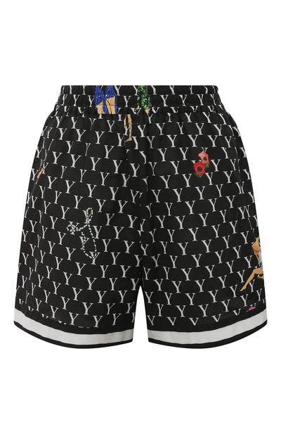 Черные шорты в пижамном стиле – удачное дополнение непринужденного повседневного образа. Для пошива модели Юлия Янина выбрала тонкий легкий хлопок с графическим паттерном в виде эмблемы и ярким мотивом в виде цветов, девушек и аксессуаров. За удобную посадку на талии отвечает широкий эластичный пояс.