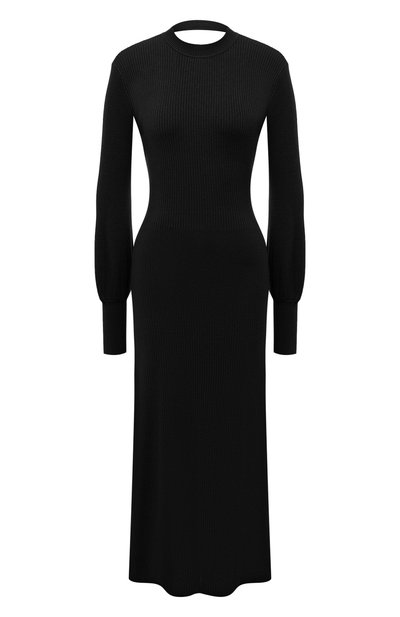 В коллекцию Responsible вошли вещи из материалов, более половины волокон для которых получили, минимизировав нагрузку на природу. В их числе — это черное платье из рифленого трикотажа на базе сертифицированной целлюлозы из возобновляемых лесов. Но это не единственное преимущество модели. В ней дизайнеры бренда, основанного Хуго Фердинандом Боссом, пе ренесли весь фокус на открытую спину с акцентирующей ее мягкой драпировкой.