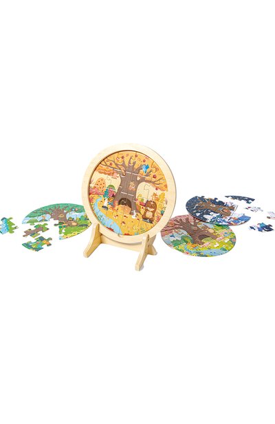Круглый пазл из 16 крупных элементов познакомит ребенка в возрасте от трех лет с временами года и их особенностями, поможет развить мелкую моторику, логическое мышление и координацию. В центре получившейся картины – светящееся солнце со светодиодной лампой. Детали выполнили из плотного картона, поэтому головоломку можно собирать и разбирать много раз. В комплекте – двухсторонний плакат с интересными фактами о законах природы и яркими иллюстрациями.