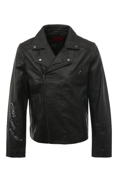 Команда марки придумала, как разнообразить дизайн черной косухи. На правом рукаве и спинке изделие декорировали надписями и рисунком ручной работы, которые делают каждую такую куртку неповторимой. Для пошива модели использовали гладкую мягкую кожу с небольшими заломами, создающими эффект одежды с историей.