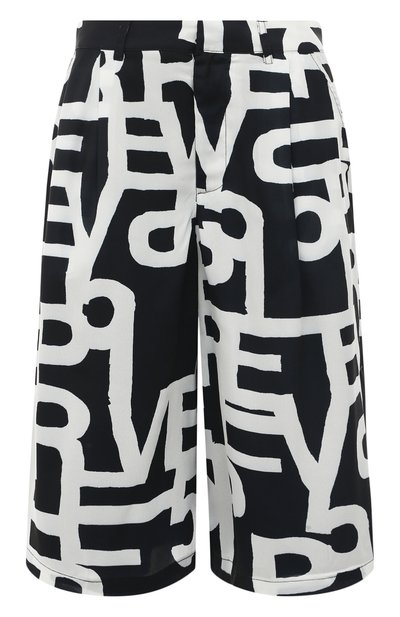 На этих свободных черных шортах длиной до середины колена словно от руки нарисовали крупный белый паттерн в виде логотипа. Для пошива модели с высокой посадкой мастера марки использовали тонкую шелковистую вискозу. Материал хорошо пропускает воздух и едва ощущается на теле, поэтому в изделии будет комфортно в теплую погоду.