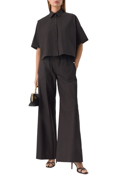 Брюки оттенка молочного шоколада сшили из мягкой гладкой кожи, отполированной до глянцевого блеска. Тонкий материал, бережно выделанный до эластичности, драпируется не хуже ткани, поэтому модель комфортно садится по фигуре, не сковывает движения и не утяжеляет силуэт. Прямой крой с пятью карманами поможет изделию поладить и с классическим пиджаком, и с джинсовым жакетом.