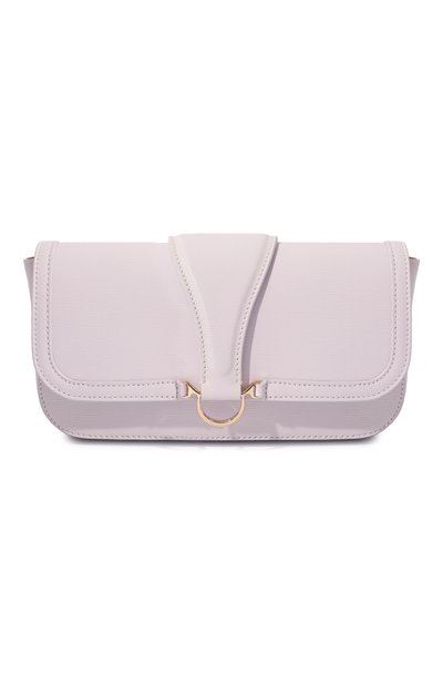Ключевым декором для сумок из линии 75 стала фигурная накладка в форме перевернутой бутылки шампанского, дополненная золотистой знаковой пряжкой в виде стремени. Пример тому — эта нежно-сиреневая модель, сшитая из мягкой фактурной кожи, устойчивой к потертостям и царапинам. В аксессуар с регулируемым плечевым ремнем поместятся картхолдер, смартфон и очки.