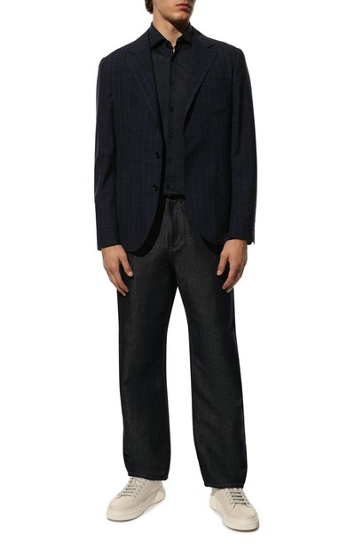 Синяя однотонная рубашка силуэта оверсайз может сыграть роль легкой куртки. Изделие с длинными рукавами и отложным воротником сшили из немнущегося нейлона с гладкой шелковистой поверхностью. Тонкий материал не продувается и отталкивает капли влаги, а сама модель, застегивающаяся молнией, почти не ощущается на теле. Нагрудный карман украшен узнаваемой треугольной пластиной с логотипом бренда.