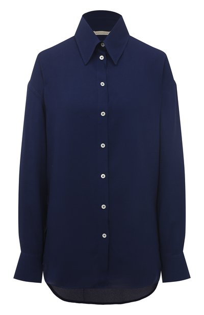 Лаконичная темно-синяя рубашка с длинными рукавами – универсальный вариант, который будет уместен и в офисе, и в менее формальной обстановке. Для пошива модели с отложным воротником мастера марки использовали тонкую нежную вискозу. Изделие из такого материала хорошо пропускает воздух, приятно ощущается на теле и почти не мнется, сохраняя свежий вид в течение дня.