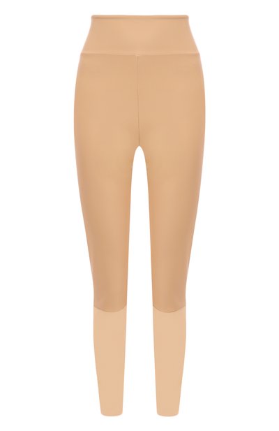 Легинсы пудрового оттенка изготовлены из гладкого эластичного бифилекса, облегающего тело, словно вторая кожа. Модель с сетчатыми вставками и уплотненным широким поясом не сковывает движения, моделирует фигуру и поддерживает живот. Сзади ‒ эмблема, указывающая на принадлежность бренду.