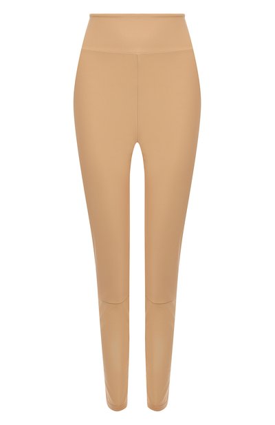 Бежевые легинсы выполнили из эластичного тонкого бифлекса. За счет сочетания премиального материала с особым кроем модель идеально облегает фигуру и дополнительно поддерживает мышцы живота. Уплотненный двойной пояс обеспечивает комфортную посадку и деликатно корректирует талию.