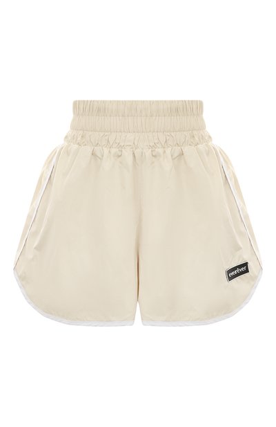 Кремовые шорты с высокой линией талии сшили из тонкой шелковистой мембранной ткани. Легкий материал не препятствует циркуляции воздуха и почти не ощущается на теле. Свободный крой модели не ограничивает движения во время прогулок или тренировок, а эластичный широкий пояс обеспечивает удобную посадку.