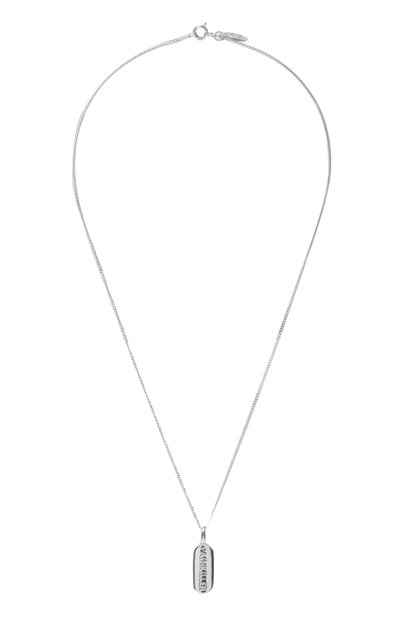 Евгения Левашова-Елагина придала этому кулону из ювелирного сплава сходство с капсулой обезболивающего препарата. На одной стороне овального украшения выгравировали насечку и надпись 100 mg, а на второй – слово Painkiller. Аксессуар дополнили узкой цепочкой с брендированной подвеской возле карабина.